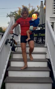 Another daughter-in-law manages a demanding job with travel for herself and her husband, while juggling daycare for two little ones, coordinating, pivoting, and maintaining equilibrium, including at-home virtual workouts with her coach, me!